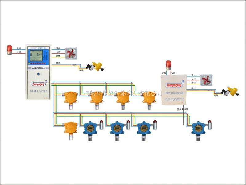 当空气中有可烯气体或可燃有毒性气体挥发的蒸汽时,探测器检测信号通过电缆立即传送到报警控制单元,控制器显示出气体浓度,当超过设定的报警浓度值时,报警控制器即发出声、光报警信号并输出联动控制信号,控制风机等设备排除险情,从而起到保障工厂安全生产,避免事故发生。广泛用各类炼油厂、油库、化工厂、液化气站等易发生可燃气体泄漏的场所。