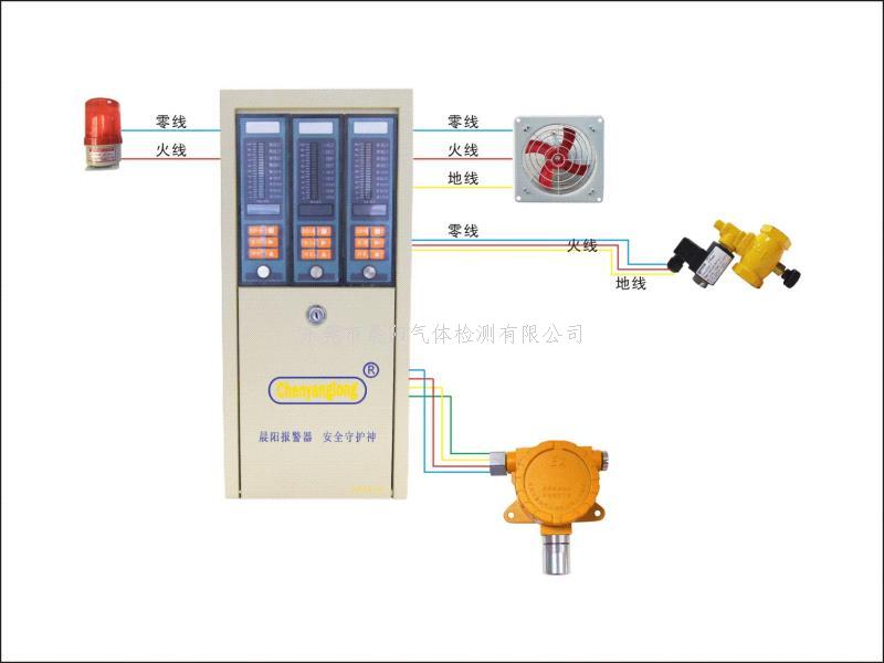 当空气中有可烯气体或可燃有毒性气体挥发的蒸汽时,探测器检测信号通过电缆立即传送到报警控制单元,控制器显示出气体浓度,当超过设定的报警浓度值时,报警控制器即发出声、光报警信号并输出联动控制信号,控制风机等设备排除险情,从而起到保障工厂安全生产,避免事故发生。广泛用各类炼油厂、油库、化工厂、液化气站等易发生可燃气体泄漏的场所。